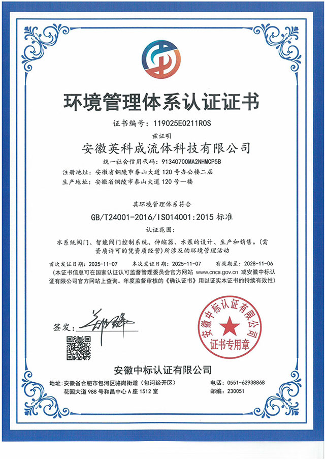 環境管理體系認證證書